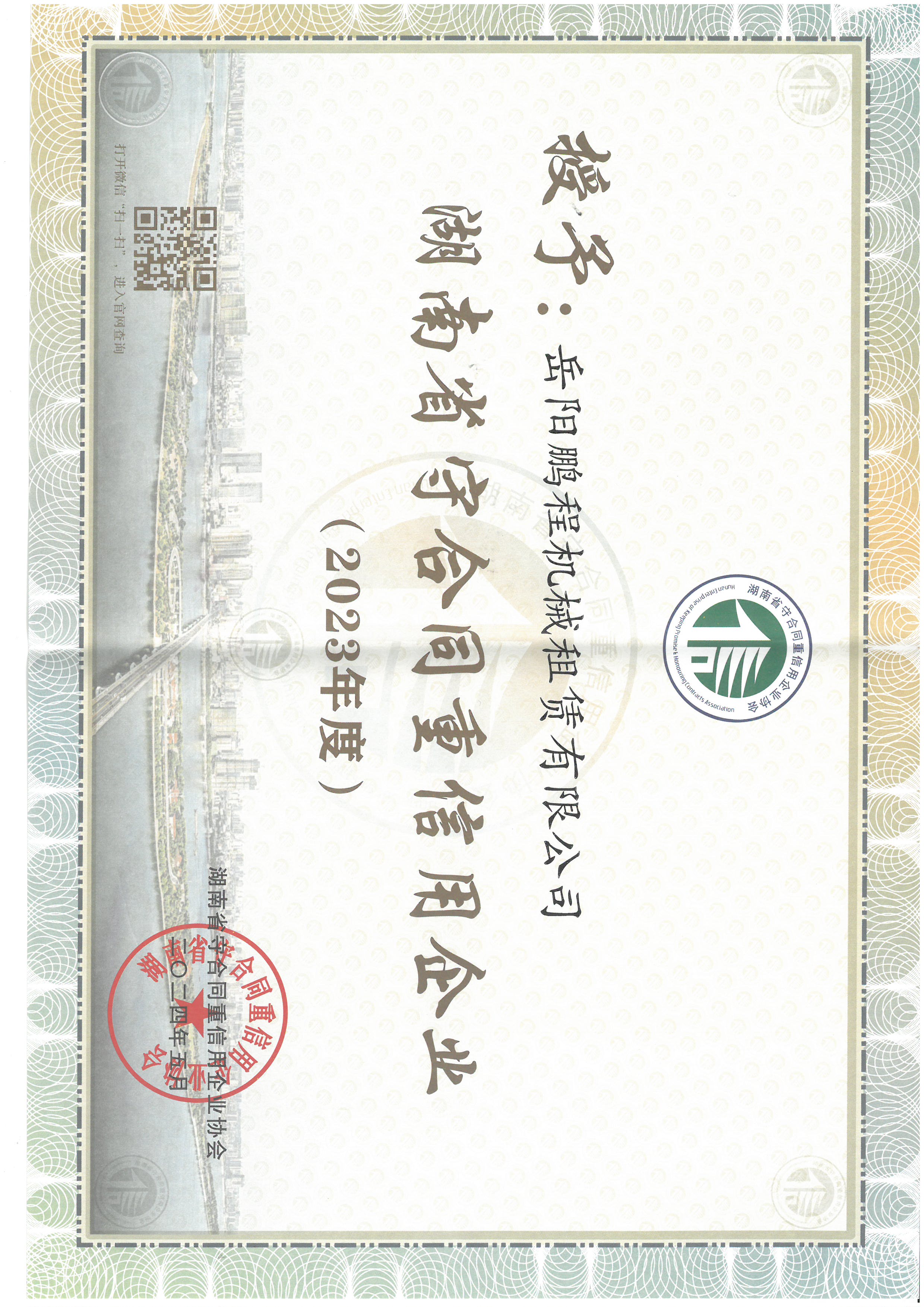 上一篇:岳陽市2023年度守合同重信用(鵬程機械)